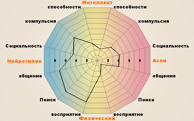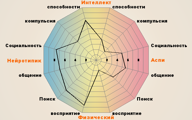 Хотя баллы не подписаны, вижу, что график ощутимо смещён в нейротипичную сторону, система скорее всего сказала, что нейротипик.Demonia писал(а):Это мои результаты...Хм